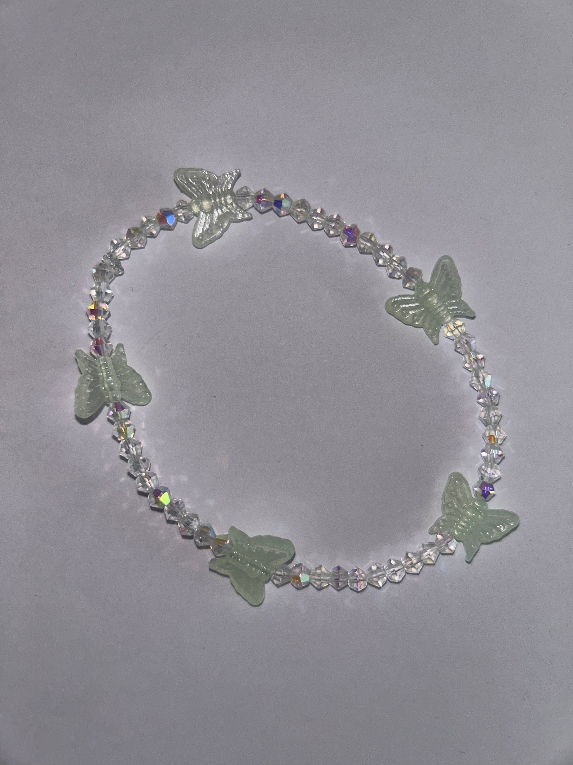 Glow in the dark butterfly beads with sparkly clear glass beads to add some sparkle to your ankle.