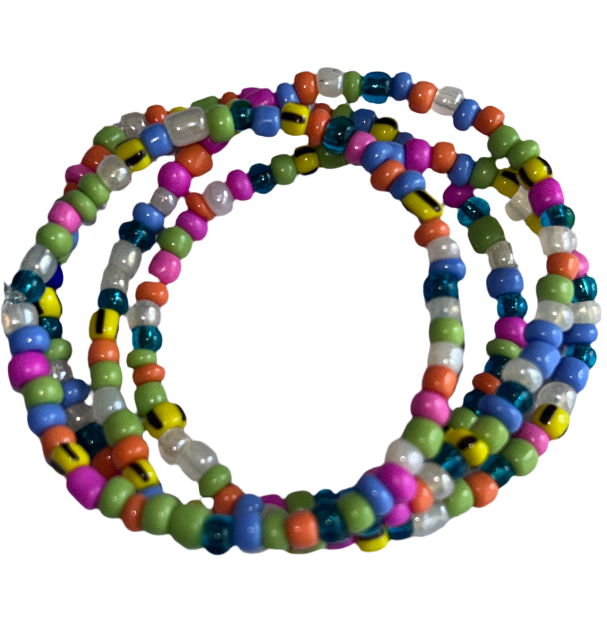 Pastel coloured glass seed beads on elastic string