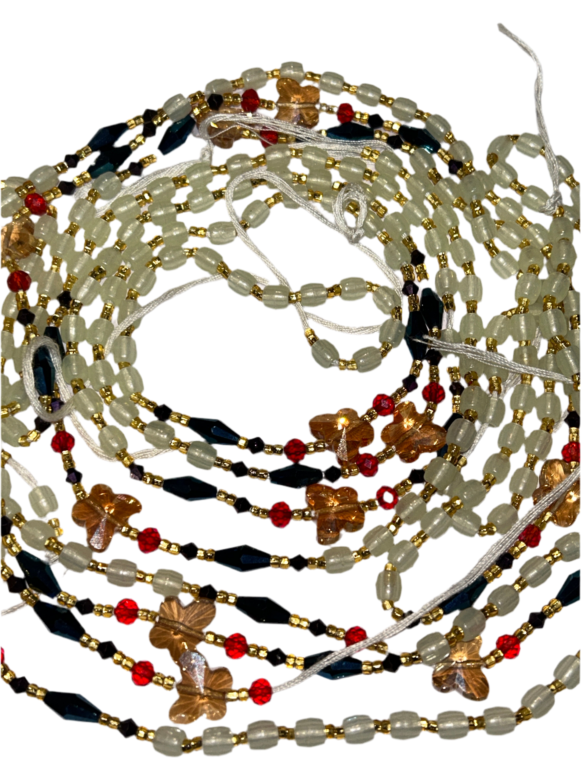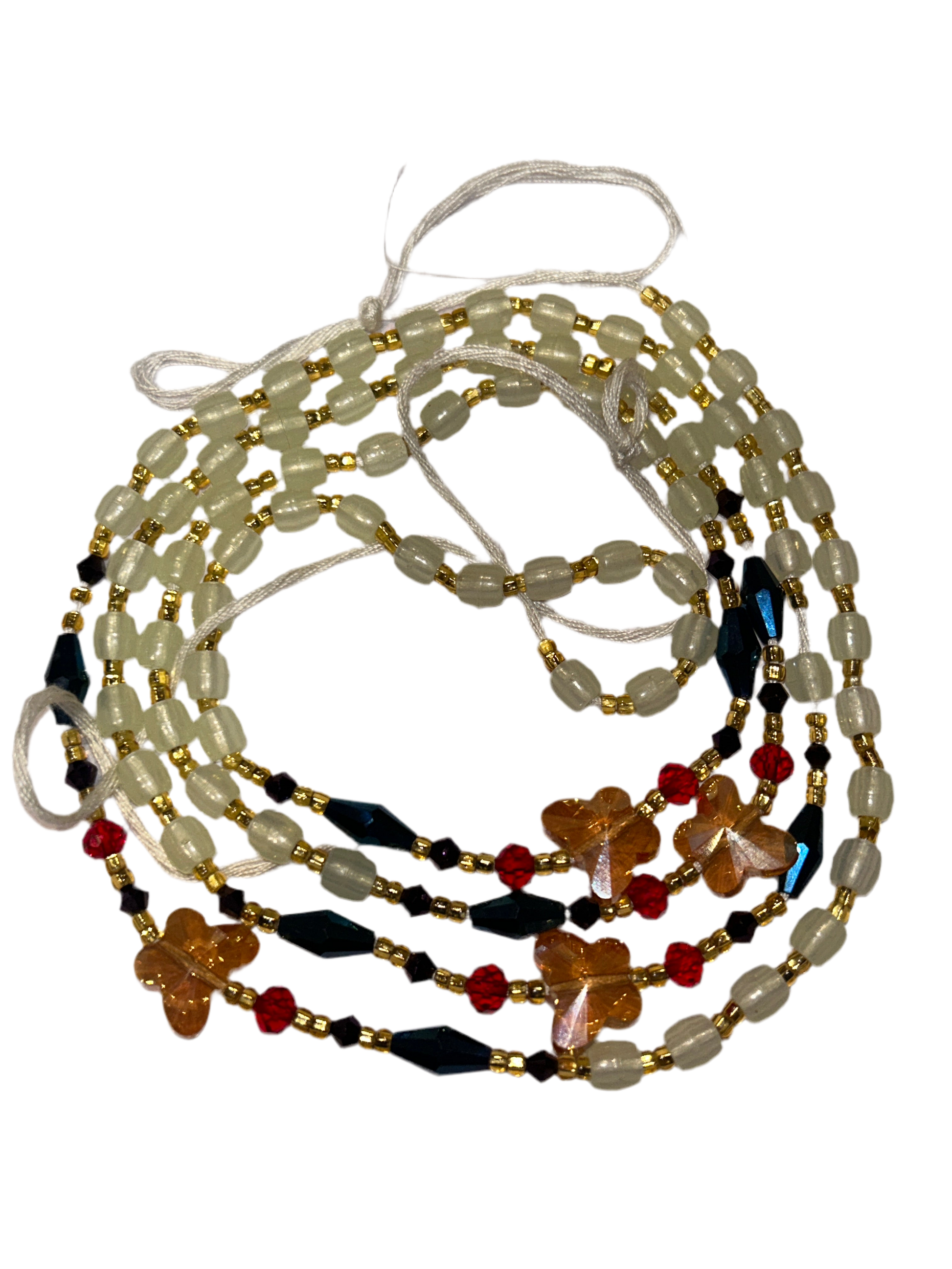 Glow in the dark waistbeads with champagne brown coloured butterfly bead charm.